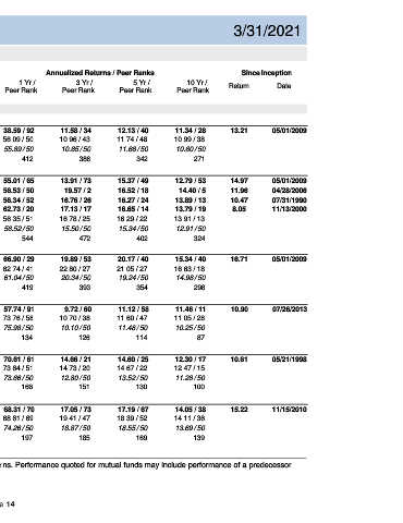 Ticker Annualized Returns / Peer Ranks Since Inception