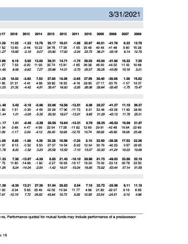 Russell 2000 Index 19.96 25.52 -11.01 14.65 21.31 -4.41 4.89 38.82 16.35 -4.18 26.85 27.17 -33.79 -1.57 18.37