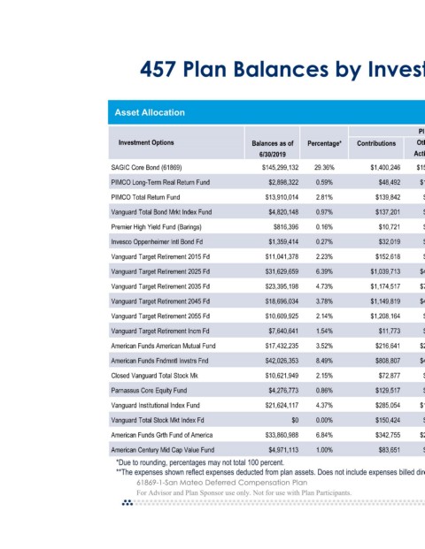 457 Plan Balances by Investment