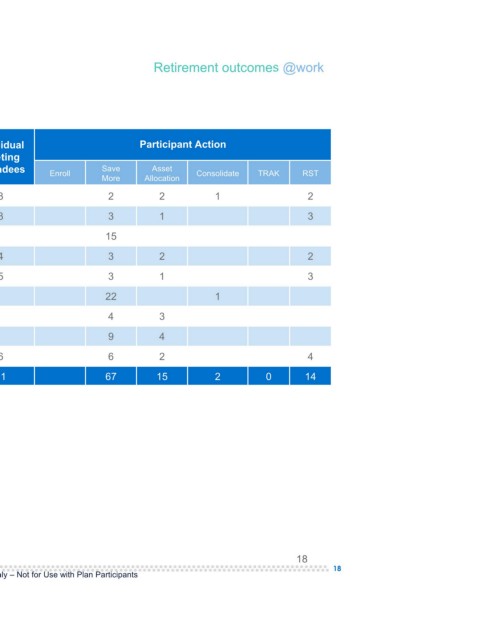 Retirement outcomes Participant Action Consolidate 1 1 2