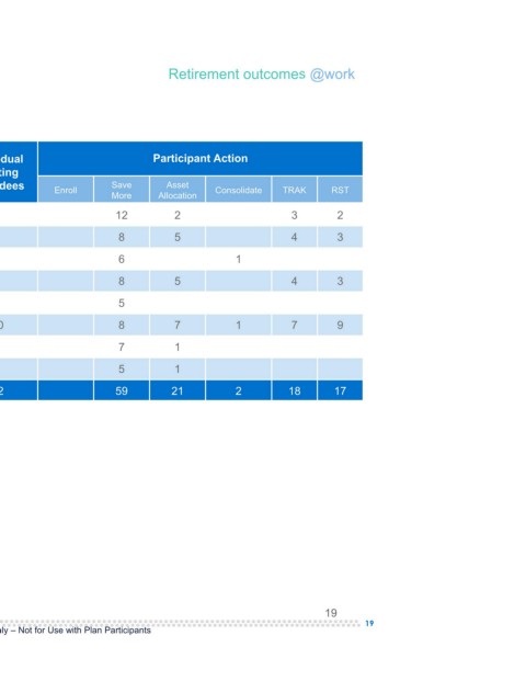 Retirement outcomes Participant Action Consolidate 1 1 2