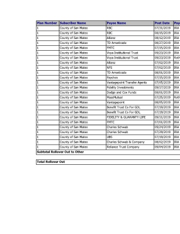 1 County of San Mateo Paychex 07/15/2019 IRA Rollover $111,158.09