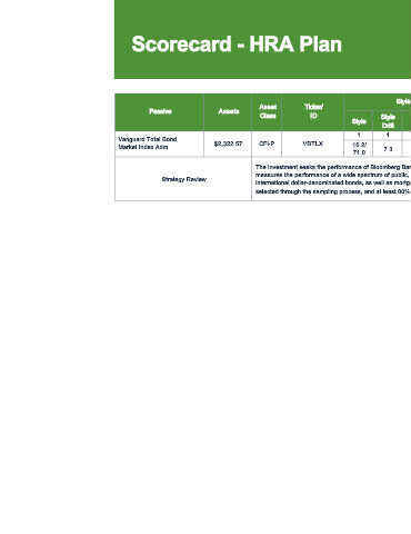 Scorecard - HRA Plan