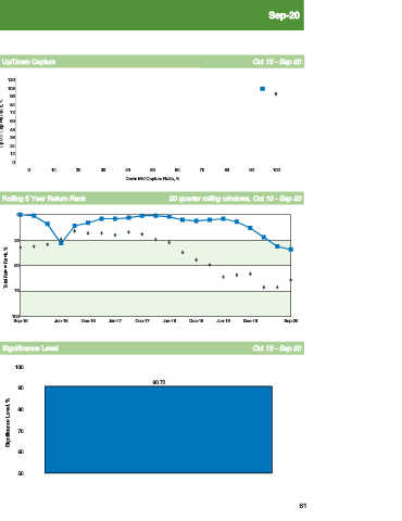 Relative Risk Return Oct 15 - Sep 20 Rolling 5 Year Return Rank 20 quarter rolling windows, Oct 10 - Sep 20