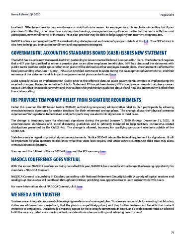 fiscal years ending after June 15, 2021. NAGDCA provided comments to GASB during the development of Statement 97, and their