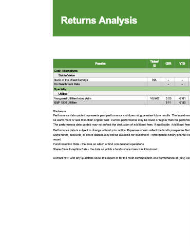 Contact NFP with any questions about this report or for the most current month-end performance at (800) 959-0071.