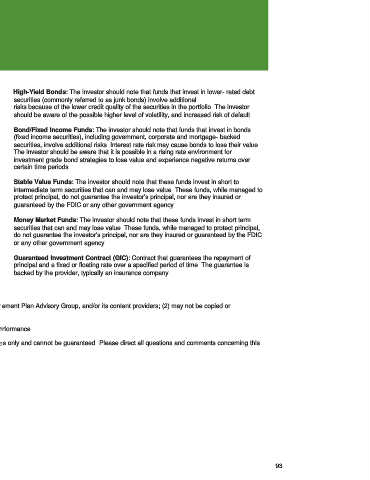 increased industry-specific risks. Stable Value Funds: The investor should note that these funds invest in short to