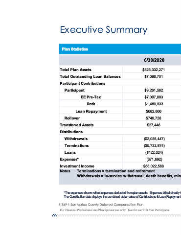 expenses deducted from Contribution data displays the combined dollar value of Contributions & Loan Repayments, if applicable. 61869-1-San Mateo County Deferred Compensation Plan For Advisor and Plan Sponsor use only. Not for use with Plan Participants.