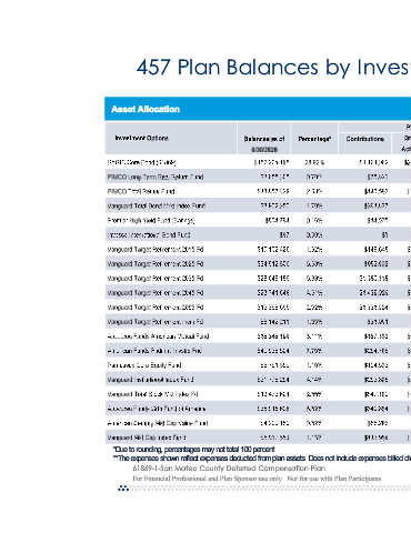 457 Plan Balances by Investment