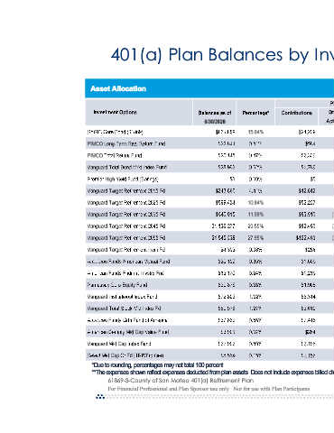 expenses deducted from *Due to rounding, percentages may not total 100 percent. 61869-3-County of San Mateo 401(a) Retirement Plan For Financial Professional and Plan Sponsor use only.