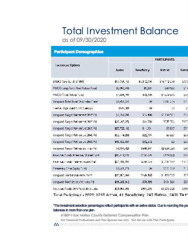 as of 09/30/2020 Participant Demographics balances in more than one plan. 61869-1-San Mateo County Deferred Compensation Plan For Financial Professional and Plan Sponsor use only.