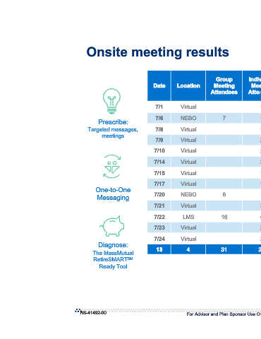 Prescribe: Targeted messages, meetings One-to-One Messaging Diagnose: The MassMutual RetireSMART SM Ready Tool RS-41492-00