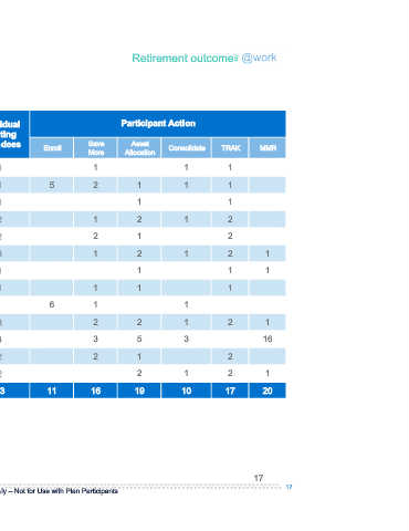 Retirement outcomes Participant Action Consolidate 1 1 1 1 1 1 1 3 1 7 1 0 1