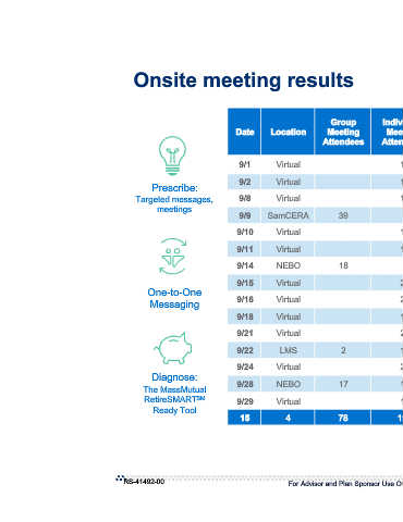 Prescribe: Targeted messages, meetings One-to-One Messaging Diagnose: The MassMutual RetireSMART SM Ready Tool RS-41492-00