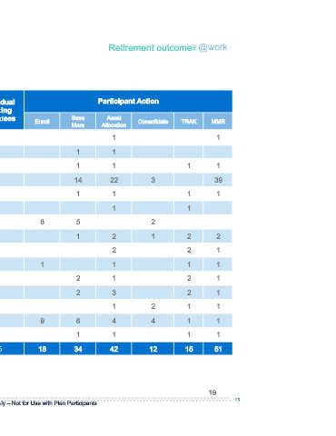 Retirement outcomes Participant Action Consolidate 3 2 1 2 4 5 1 2 1