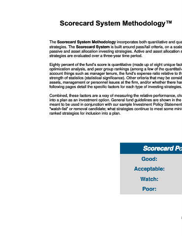 into a plan as an investment option. General fund guidelines are shown in the “Scorecard Point System” table below. The Scorecard Point System is