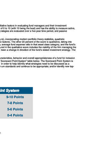 into a plan as an investment option. General fund guidelines are shown in the “Scorecard Point System” table below. The Scorecard Point System is