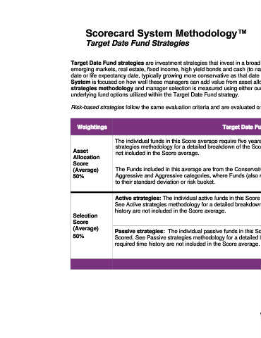 date or life expectancy date, typically growing more conservative as that date is approached. For this type of investment strategy, the Scorecard