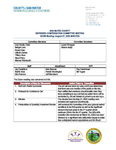 3. Minutes The minutes from the May 21, 2020 meeting were