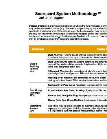 this type of investment strategy, the Scorecard System is focused on how well these managers track and/or replicate a particular area of the market