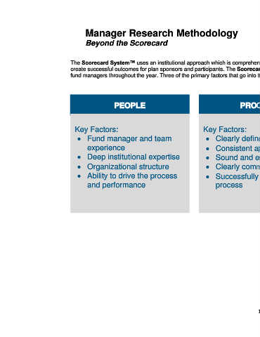 create successful outcomes for plan sponsors and participants. The Scorecard helps direct the additional research the Investment team conducts with