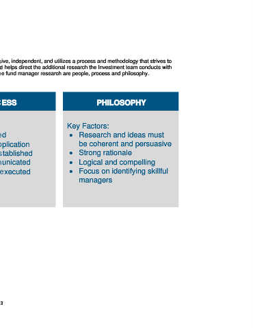 fund managers throughout the year. Three of the primary factors that go into the fund manager research are people, process and philosophy.