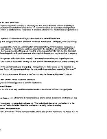 The enclosed Investment Due Diligence report, including the Scorecard System, is intended for plan sponsor and/or institutional use only. The materials are not intended for participant use.