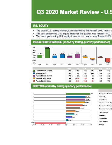 • The best performing U.S. equity index for the quarter was Russell 1000 Growth, returning a positive 13.2%.
