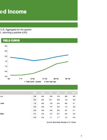 • The broad U.S. fixed income market returned 0.6% (Bloomberg Barclays U.S. Aggregate) for the quarter.