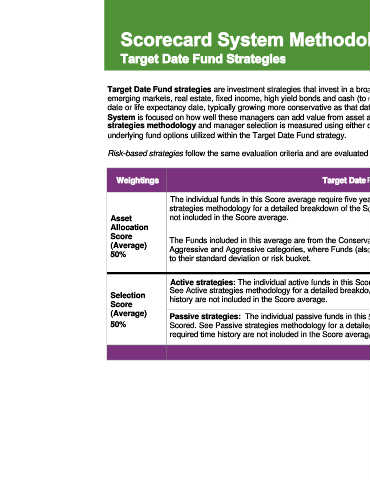 date or life expectancy date, typically growing more conservative as that date is approached. For this type of investment strategy, the Scorecard