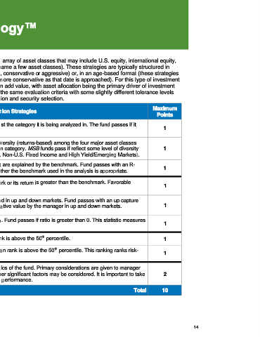 returns and the resulting Score. Multisector Bond (MSB) asset class follows the same evaluation criteria with some slightly different tolerance levels