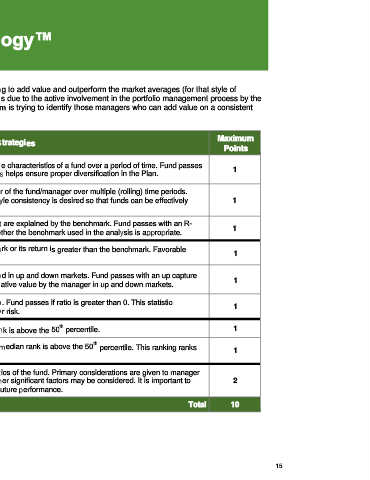 fund manager(s). For this type of investment strategy, the Scorecard System is trying to identify those managers who can add value on a consistent