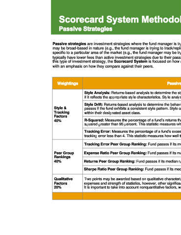 this type of investment strategy, the Scorecard System is focused on how well these managers track and/or replicate a particular area of the market