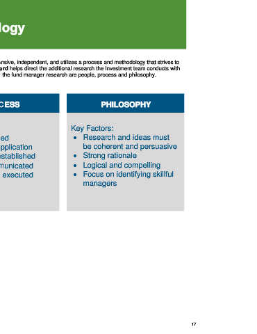 fund managers throughout the year. Three of the primary factors that go into the fund manager research are people, process and philosophy.