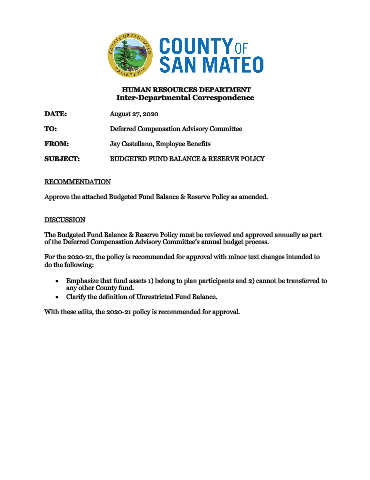 of the Deferred Compensation Advisory Committee’s annual budget process.