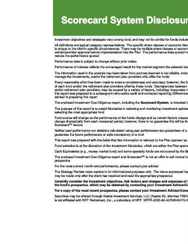 The enclosed Investment Due Diligence report, including the Scorecard System, is intended for plan sponsor and/or institutional use only. The materials are not intended for participant use.