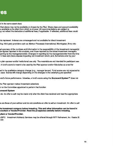 The enclosed Investment Due Diligence report, including the Scorecard System, is intended for plan sponsor and/or institutional use only. The materials are not intended for participant use.