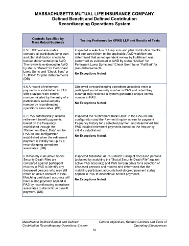 6.5 Fulfillment associates Inspected a selection of lump sum and plan distribution checks