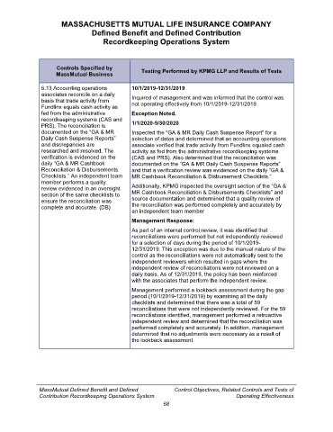 MassMutual Business Testing Performed by KPMG LLP and Results of Tests