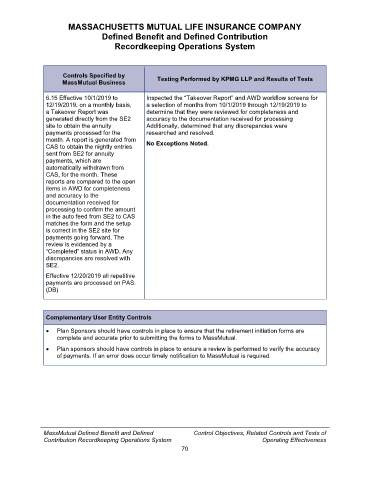 MassMutual Defined Benefit and Defined Control Objectives, Related Controls and Tests of