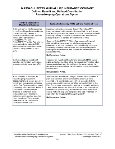 MassMutual Business Testing Performed by KPMG LLP and Results of Tests