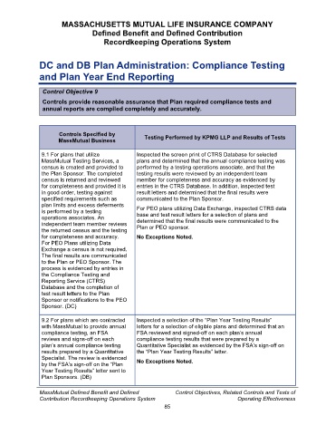 MassMutual Business Testing Performed by KPMG LLP and Results of Tests