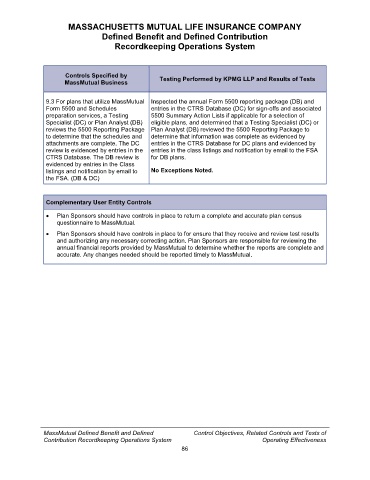MassMutual Defined Benefit and Defined Control Objectives, Related Controls and Tests of