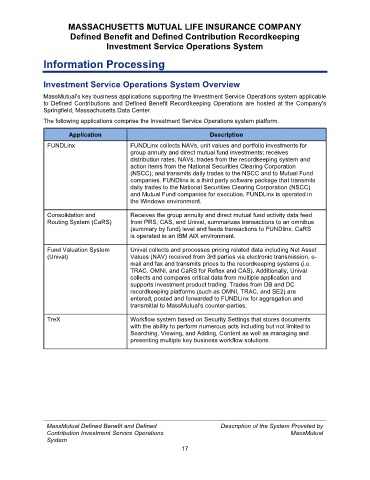 MassMutual’s key business applications supporting the Investment Service Operations system applicable