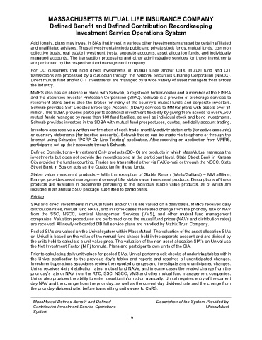 SIAs and direct investments in mutual funds and/or CITs are valued on a daily basis. MMRS receives daily