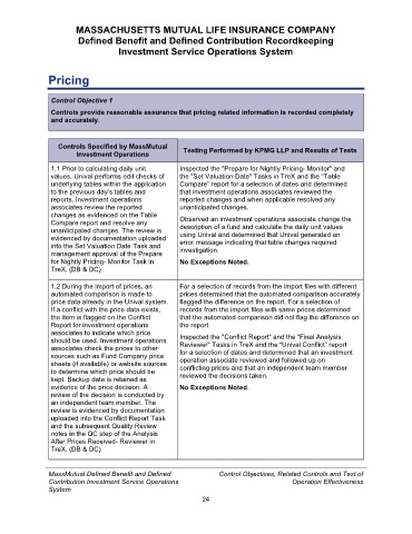 MassMutual Defined Benefit and Defined Control Objectives, Related Controls and Test of