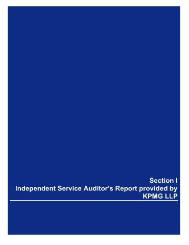 Section I – Independent Service Auditors’ Report provided by KPMG LLP Section I Independent Service Auditor’s Report provided by KPMG LLP