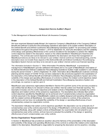 operating effectively, along with related controls at MassMutual. Our examination did not extend to such