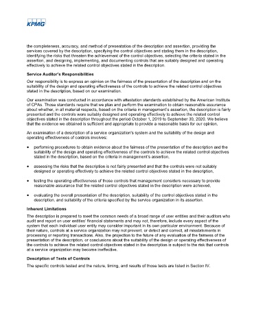 presentation of the description, or conclusions about the suitability of the design or operating effectiveness of
