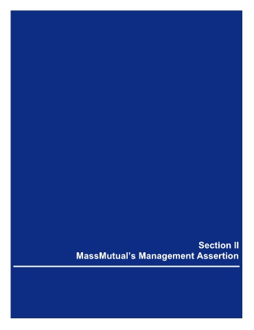 Section II – MMMM Management’s Assertion Section II MassMutual’s Management Assertion Massachusetts Mutual Life Insurance Company (MassMutual®), Springfield, MA 01111, and its affiliated Companies. 5